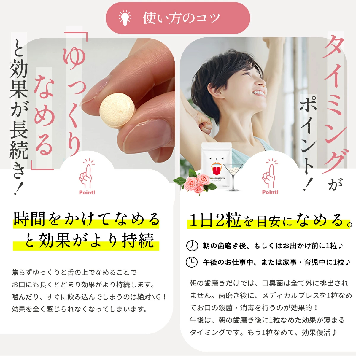 口臭ケアはタブレットが続けやすくていいですね、マウスウォッシュだととっさに使いたいときに使えないので…